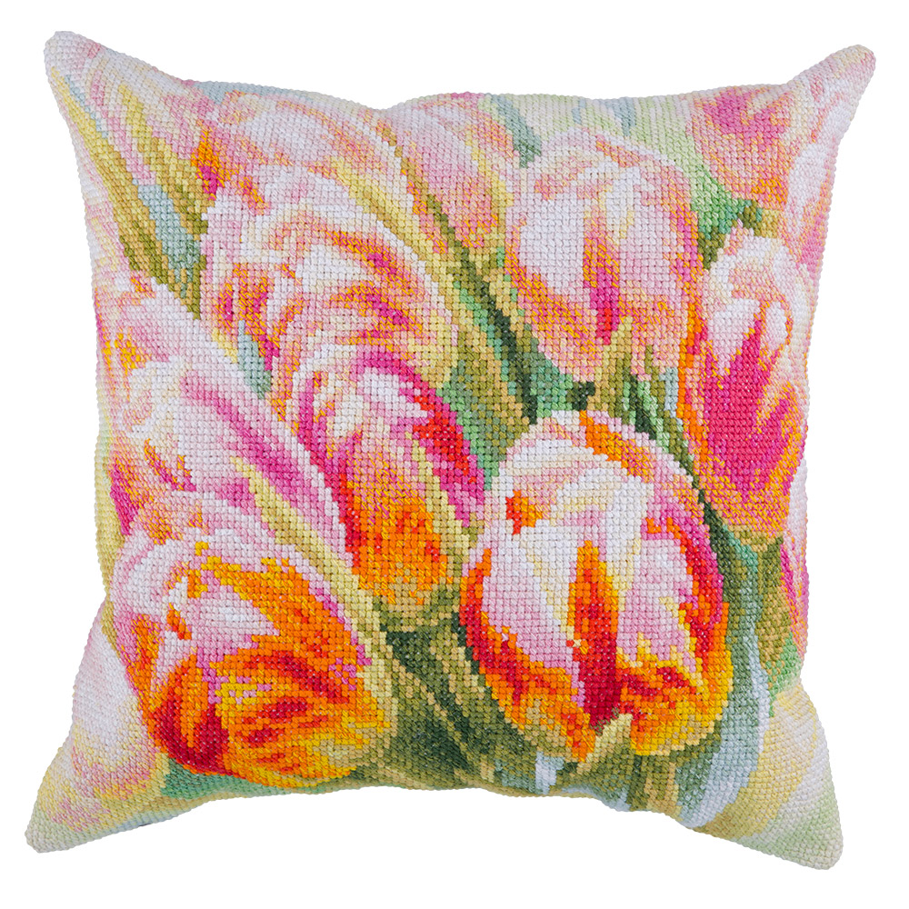 The Tulip is a symbol of fame, passion, and romance. Pink Tulips in particular are a symbol of happiness and self-confidence. The dog embodies loyalty, courage and vigilance.